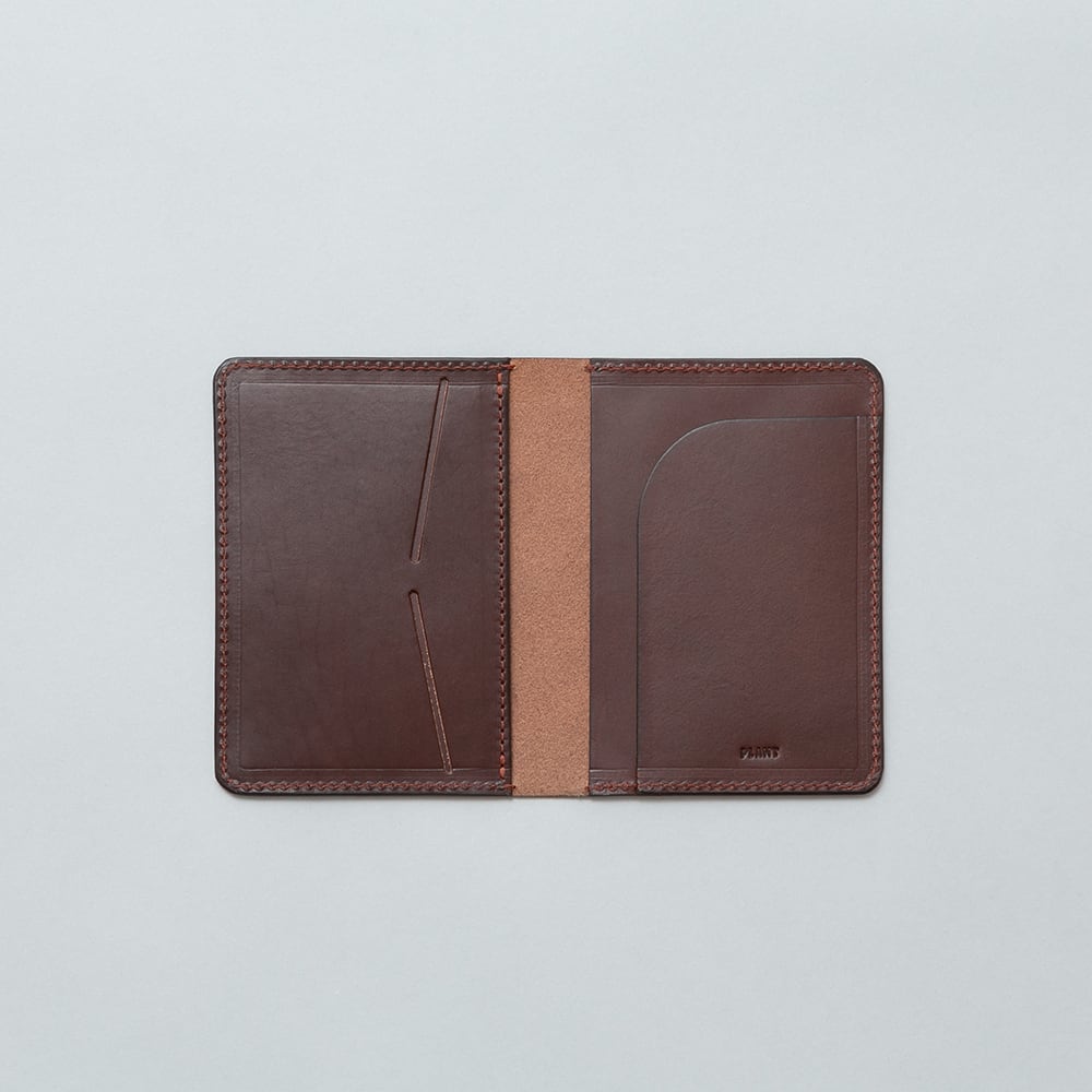 【Passport case / NC-1047】 Leather : BULGARO color : Brown / Dark brown / Black size : W100mm / H140mm / D15mm 必要最低限の収納量を確保したコンパクトなパスポートケース。 内装の袖部分を広めに設定しており、手荷物検査や出国時にパスポートを取り出しやすいよう片面差しを基準にお作りしています。ご家族と渡航する際は左右に二冊差し込んでお使いいただけます。 左袖には差込のカードポケットを2箇所配置しているため、クレジットカードやホテルのカードキーを収納しておくことで空港利用時だけでなく旅行中にも活用していただけます。右袖には冊子やチケットの収納できるポケットを取り付けており、航空券も切り取り線で折りたたむことで丁度よく収めることが出来ます。 ポケットや鞄の隙間に収納しやすいよう外装に留め具を設けず、見た目も使い勝手もすっきりとしたスリムな構造。B7ノートも収納可能なのでビジネスシーンでのご使用もおすすめです。 【受注制作商品】 こちらの商品はご注文を頂いてから製作致します。お手元に届くまで4-5週間の納期を頂いておりますので予めご了承ください。 在庫がある場合は3営業日以内に発送致します。在庫の有無は事前に問い合わせることも可能ですのでお急ぎの場合はご連絡下さい。