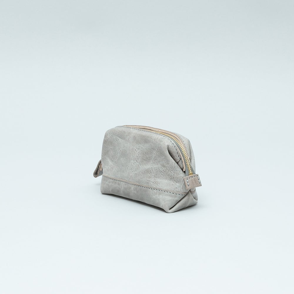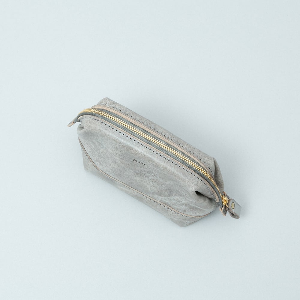 【Wire pouch S / PO-3048-S】 Leather : SIBILLA BOX color : Ivory / Graphite / Smoke black size : W150mm / H100mm / D60mm 軽やかな質感の口枠式ファスナーポーチ。 柔らかく軽量な本体に対して、開閉部分に真鍮のワイヤーを仕込むことでメリハリのある立体的な構造に仕上げています。 口枠カバンのように大きく開口するため見通しが良く、開いたままでも使用できるので据え置きのスタンドポーチとしてもお使いいただけます。 手に収まりの良いSサイズはメイクパレットやブラシが丁度よく収まる大きさに設計しました。普段使いはもちろん、トラベルポーチとして旅行時の携帯にもおすすめです。 【受注制作商品】 こちらの商品はご注文を頂いてから製作致します。お手元に届くまで4-5週間の納期を頂いておりますので予めご了承ください。 在庫がある場合は3営業日以内に発送致します。在庫の有無は事前に問い合わせることも可能ですのでお急ぎの場合はご連絡下さい。