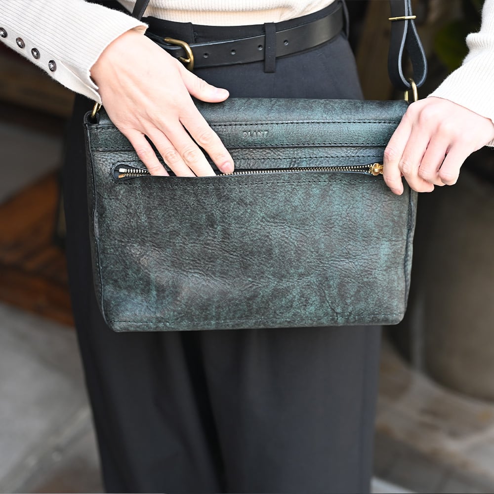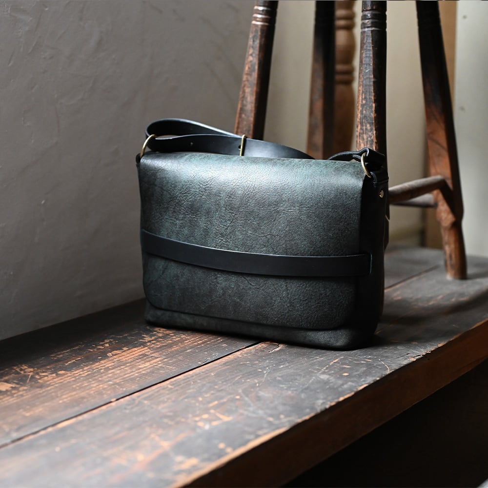 経年変化を楽しめる、総かぶせのプレーンなショルダーバッグ。