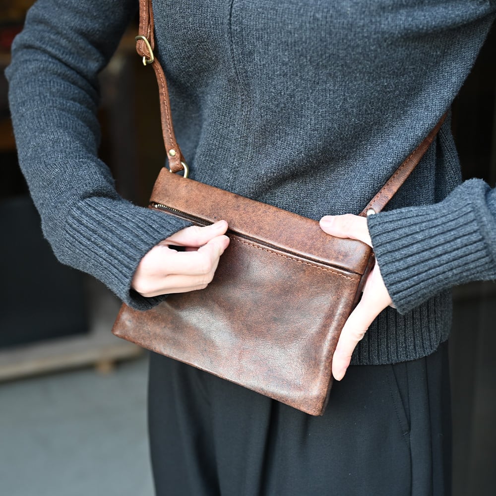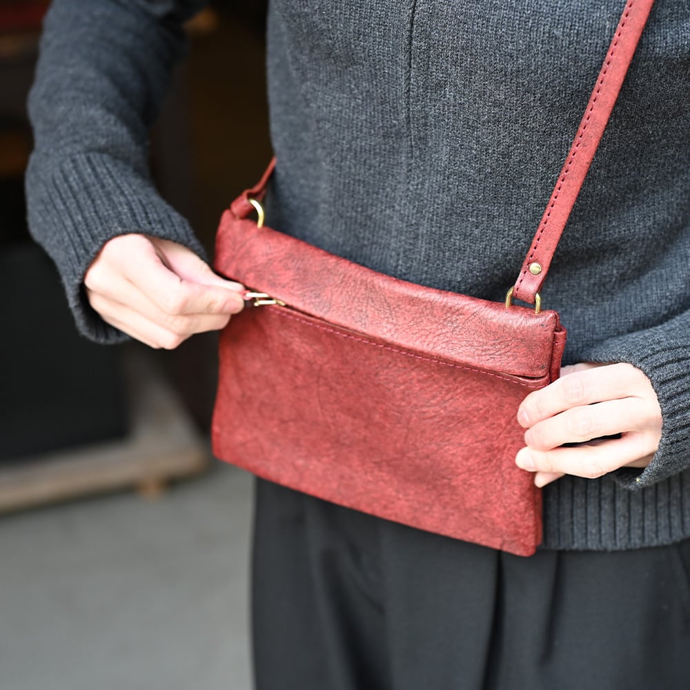 縫製を最小限に抑えたミニマルな見た目が特徴の軽やかなサコッシュ。