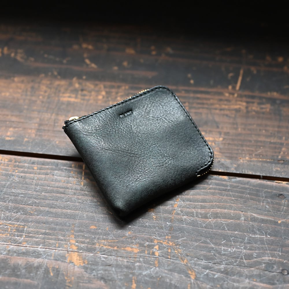 底に入り込むようにファスナーを深めに配置することで本体が大きく開閉し、財布の角にほんの少しマチをつけることで収納時にフォルムが大きく崩れない工夫を施しています。