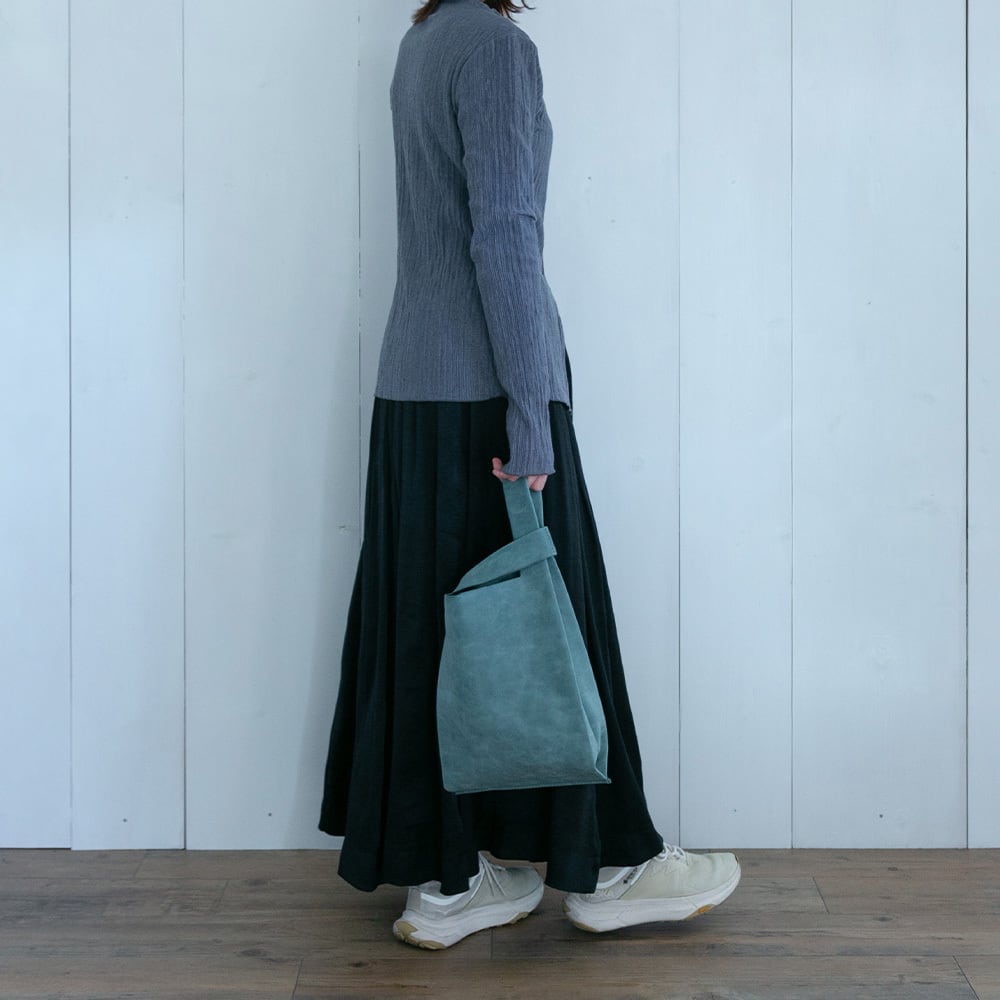 マチが可変する構造のため、未使用時はフラットですが荷物を収納するのに合わせてふっくらとした柔らかなシルエットに変化していきます。