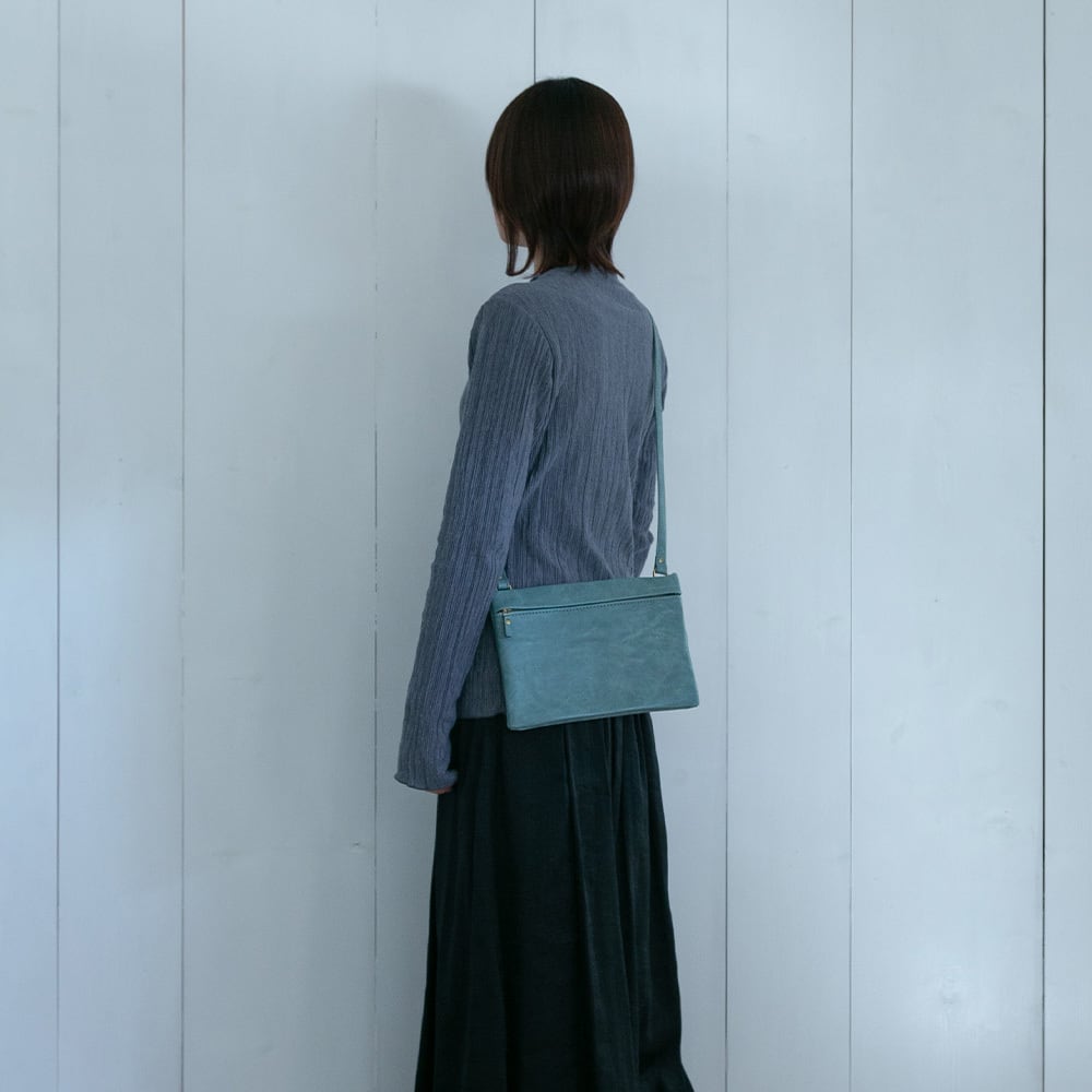 縫製を最小限に抑えたシームレスな見た目が特徴の軽やかなサコッシュ。