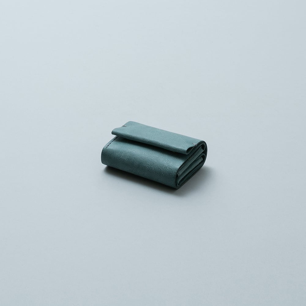 両端に施された一本ステッチのかぶせがアクセントになっている三つ折り財布。