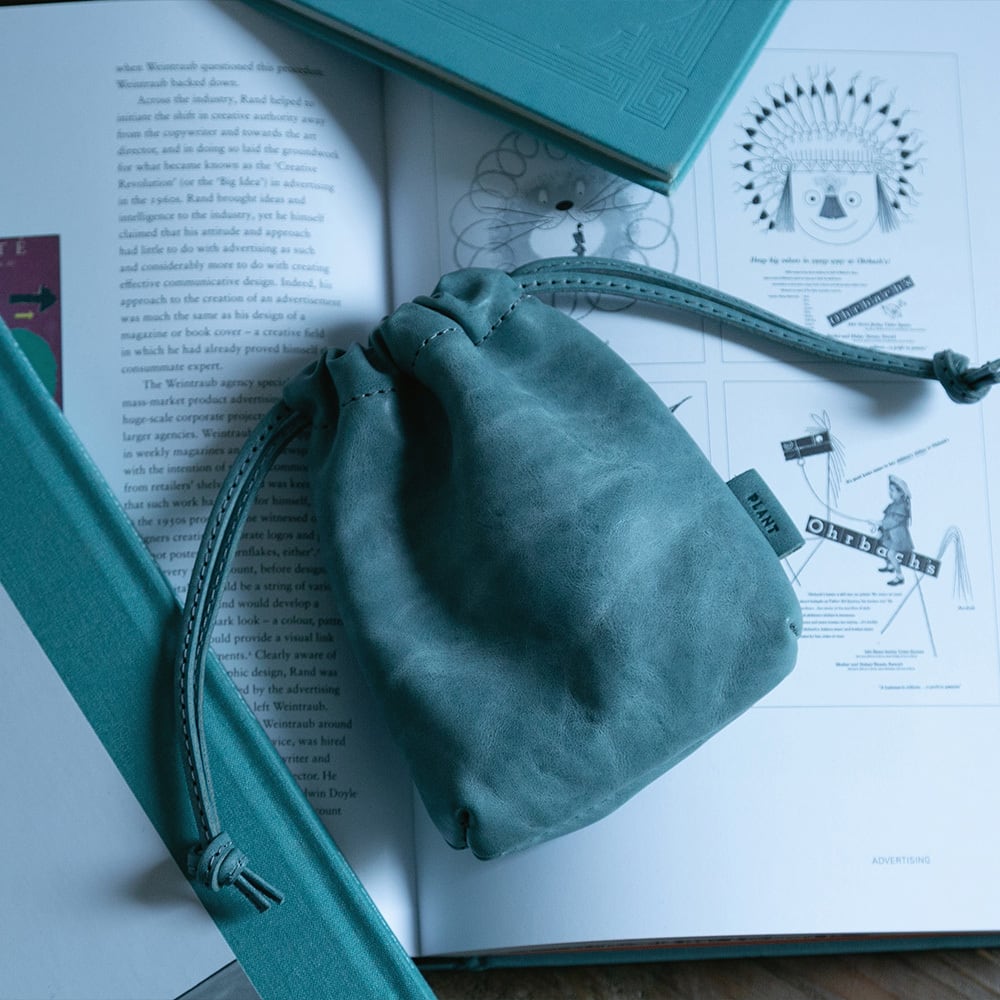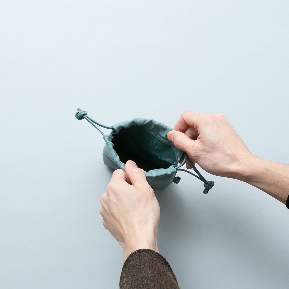 ほんのりとマチのついた柔らかな本体は収納物にあわせて柔軟に対応し、綺麗なシルエットを保ちながらお使いいただけます。絞り紐も一つ一つ丁寧に縫い上げることで伸びを防止する堅牢な仕様でお作りしています。