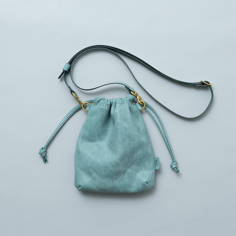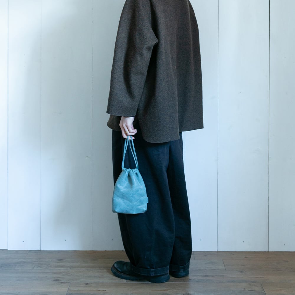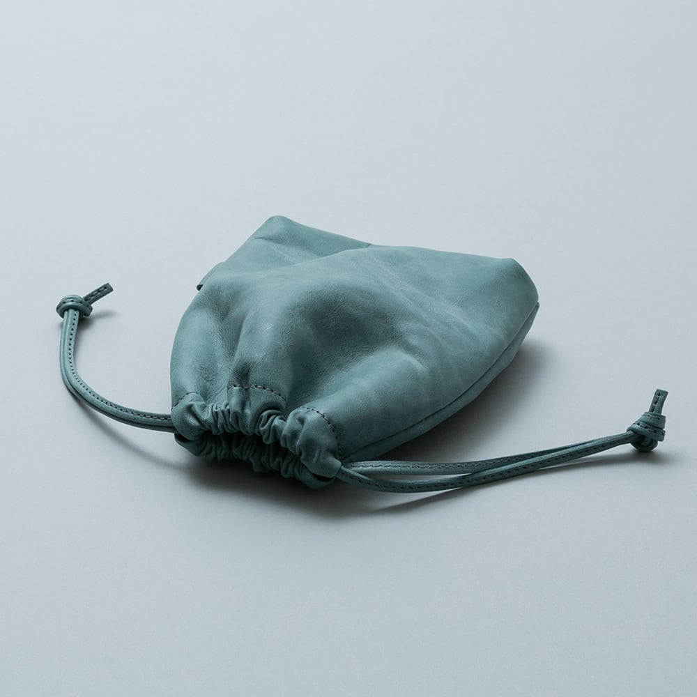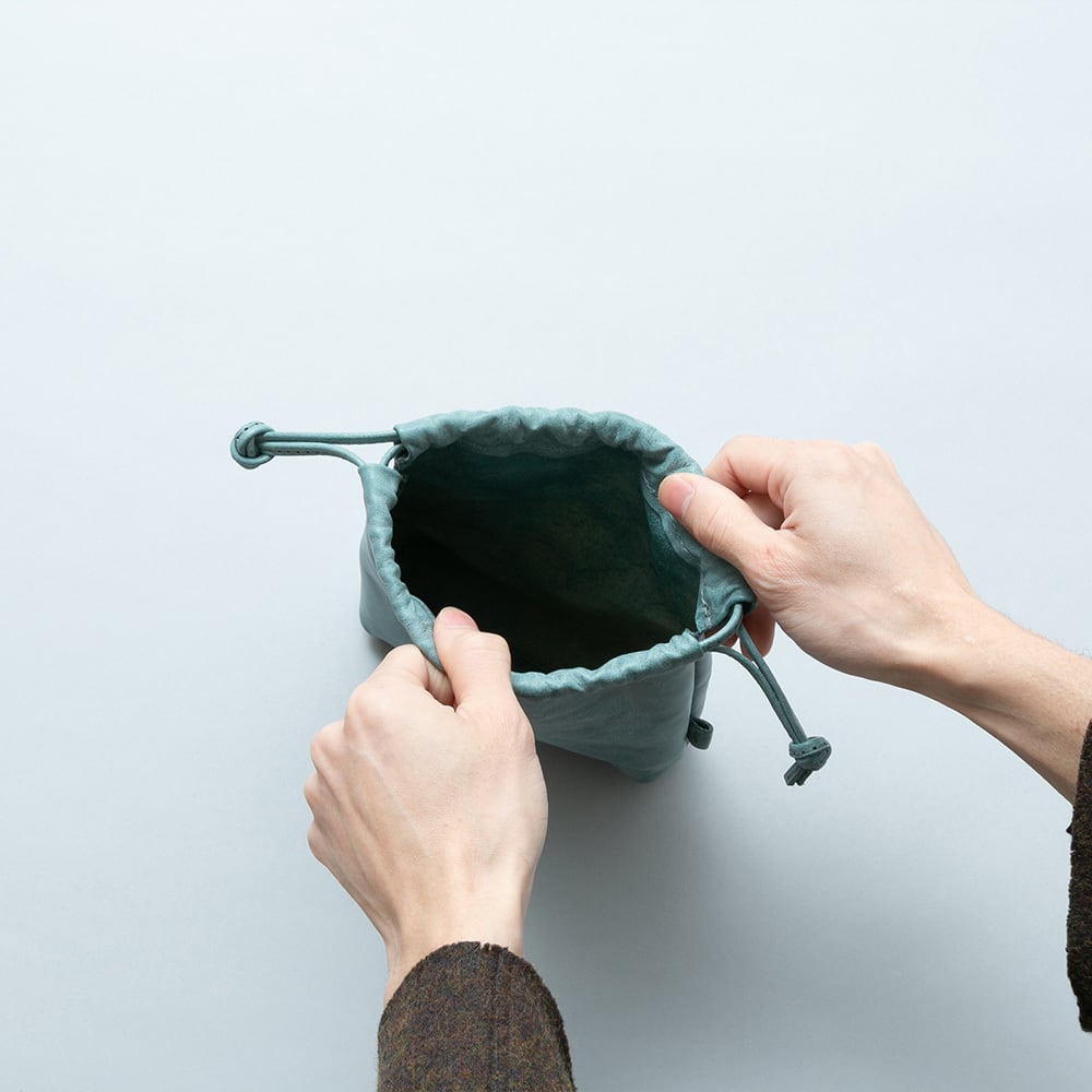 ほんのりとマチのついた柔らかな本体は収納物にあわせて柔軟に対応し、綺麗なシルエットを保ちながらお使いいただけます。絞り紐も一つ一つ丁寧に縫い上げることで伸びを防止する堅牢な仕様でお作りしています。