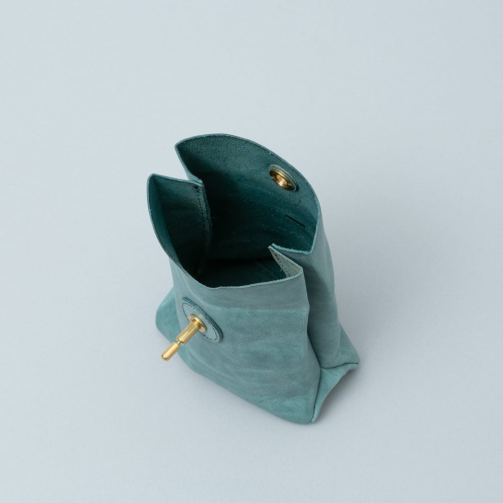 ポーチの顔にもなっている真鍮製の起こし金具は見た目の可愛らしさに加え、ワンタッチでスムーズに開閉できる機能性も持ち合わせています。