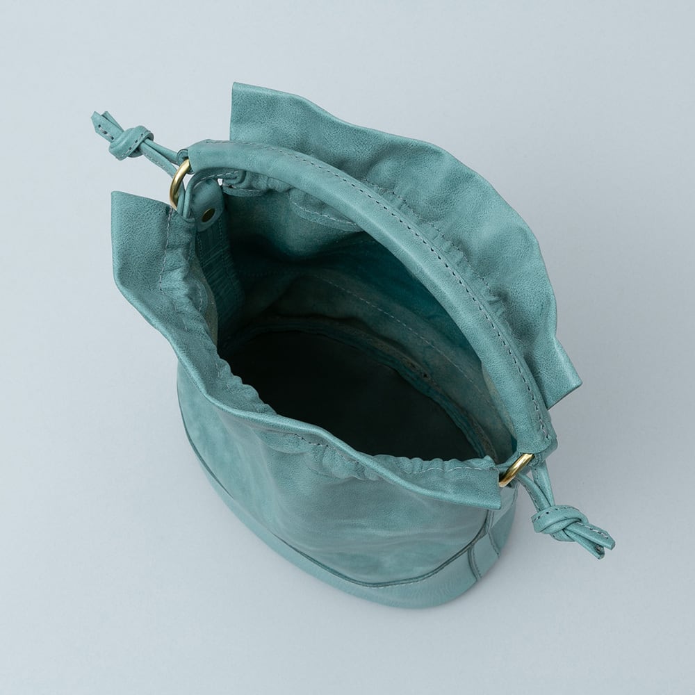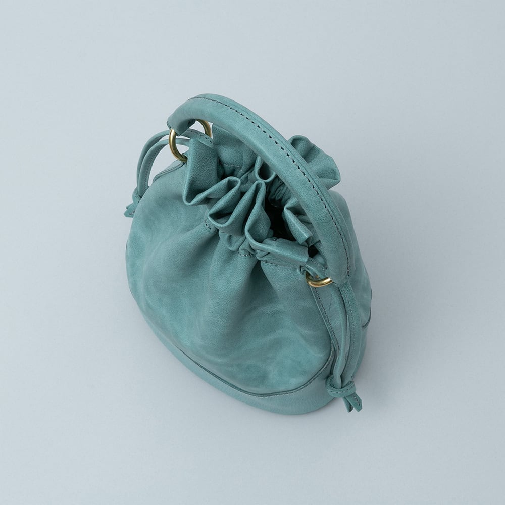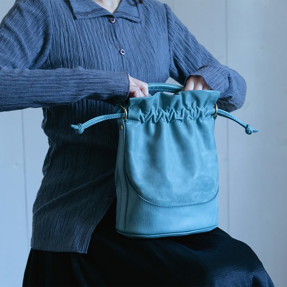 口元の開閉部分は柔らかなシビラボックスを使用しており、底部分は本体を包み込むようなアーチを描いたシビラリスシオの当て革で補強しているためしっかりと自立します。使うほどに革質のコントラストが出てくる、エイジングを楽しみながらお使いいただける鞄です。