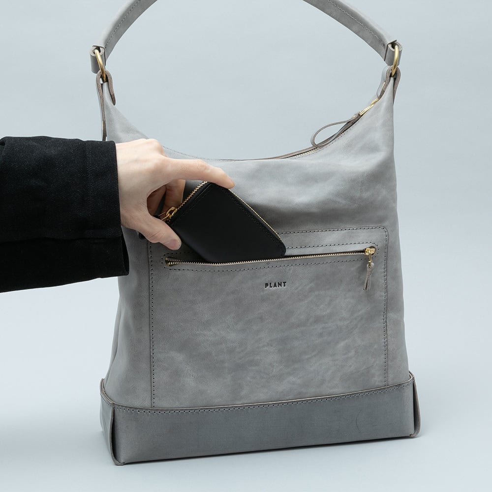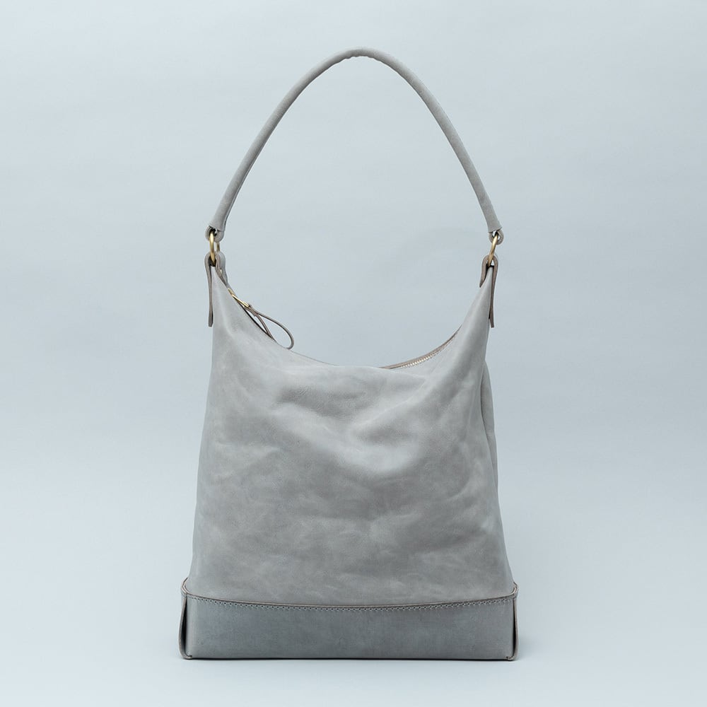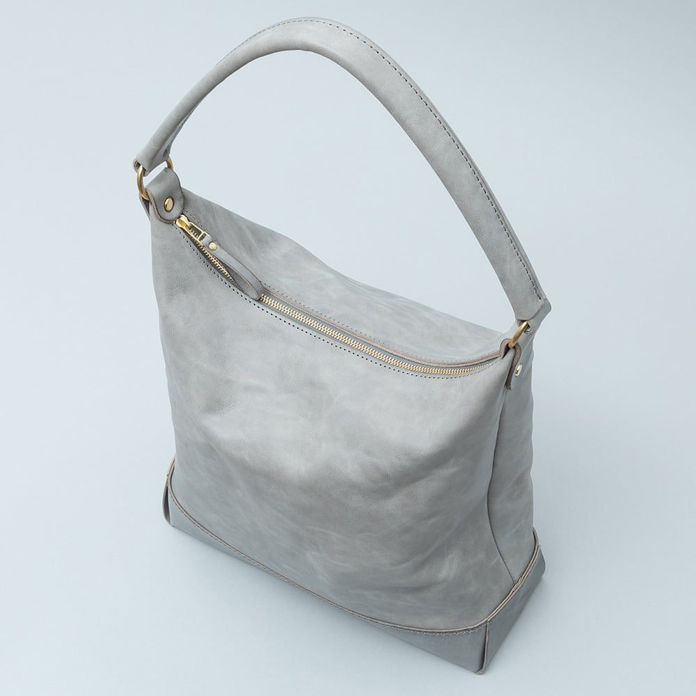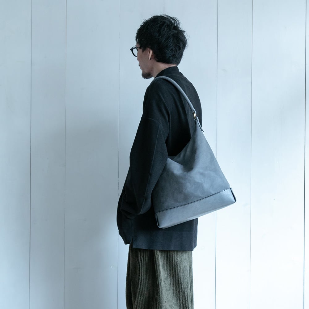 【Arco tote bag / TT-340】 Leather : SIBILLA LISCIO × SIBILLA BOX color : Ivory / Graphite / Smoke black size : W330mm / H330mm (取手含まず)- 300mm(取手高) / D120mm weight : 0.8kg 本体からショルダーストラップにかけて柔らかな円弧を描いたトートバッグ。 シビラボックスの柔軟性を活かした沈み込むような落ち感のあるフォルムが印象的な本体。底部分にはスムースレザーのシビラリスシオで切り返しをしているため、革質のコントラストを楽しみつつも床に置いた時にしっかりと自立するように仕立てています。 本体収納部はA4規格に対応しており、内部にはA5ノートの入る差し込みポケットを付属しています。背面部にはファスナーポケットを付けているため、キーケースやスマートフォンなどよく取り出すものの収納におすすめです。 写真ではフラップノートカバーL(NC-2029-L)、A4レザーファイル(NC-1052)、ドローストリングポーチM(PO-3037-M)、スクエアウォレットL(WA-3005-L)、ラウンドジップキーケース(KH-1028)、タンブラーを収納しています。 カジュアルからフォーマルまで幅広く使用できるすっきりとしたワンハンドルトートバッグです。 【受注制作商品】 こちらの商品はご注文を頂いてから製作致します。お手元に届くまで4-5週間の納期を頂いておりますので予めご了承ください。 在庫がある場合は3営業日以内に発送致します。在庫の有無は事前に問い合わせることも可能ですのでお急ぎの場合はご連絡下さい。