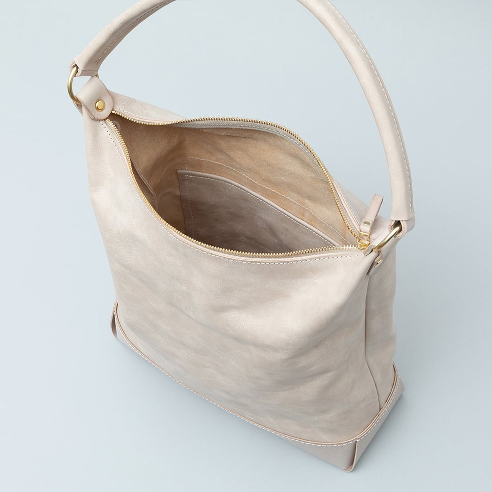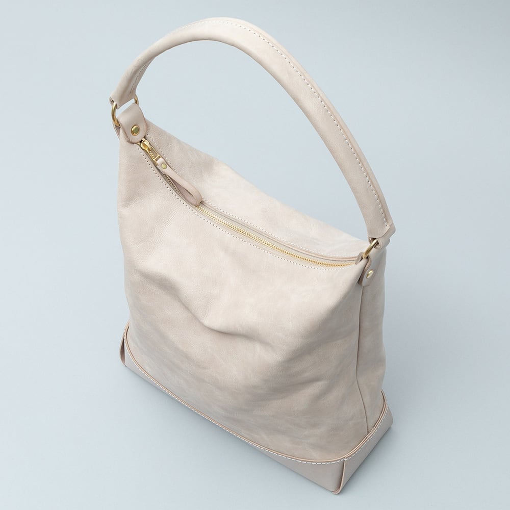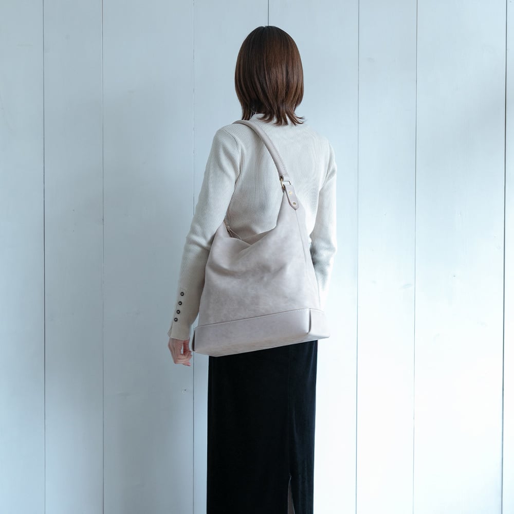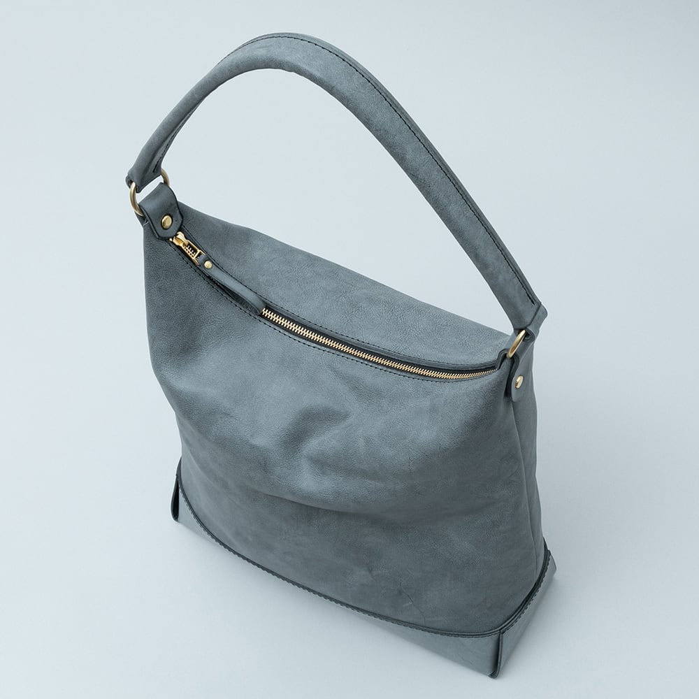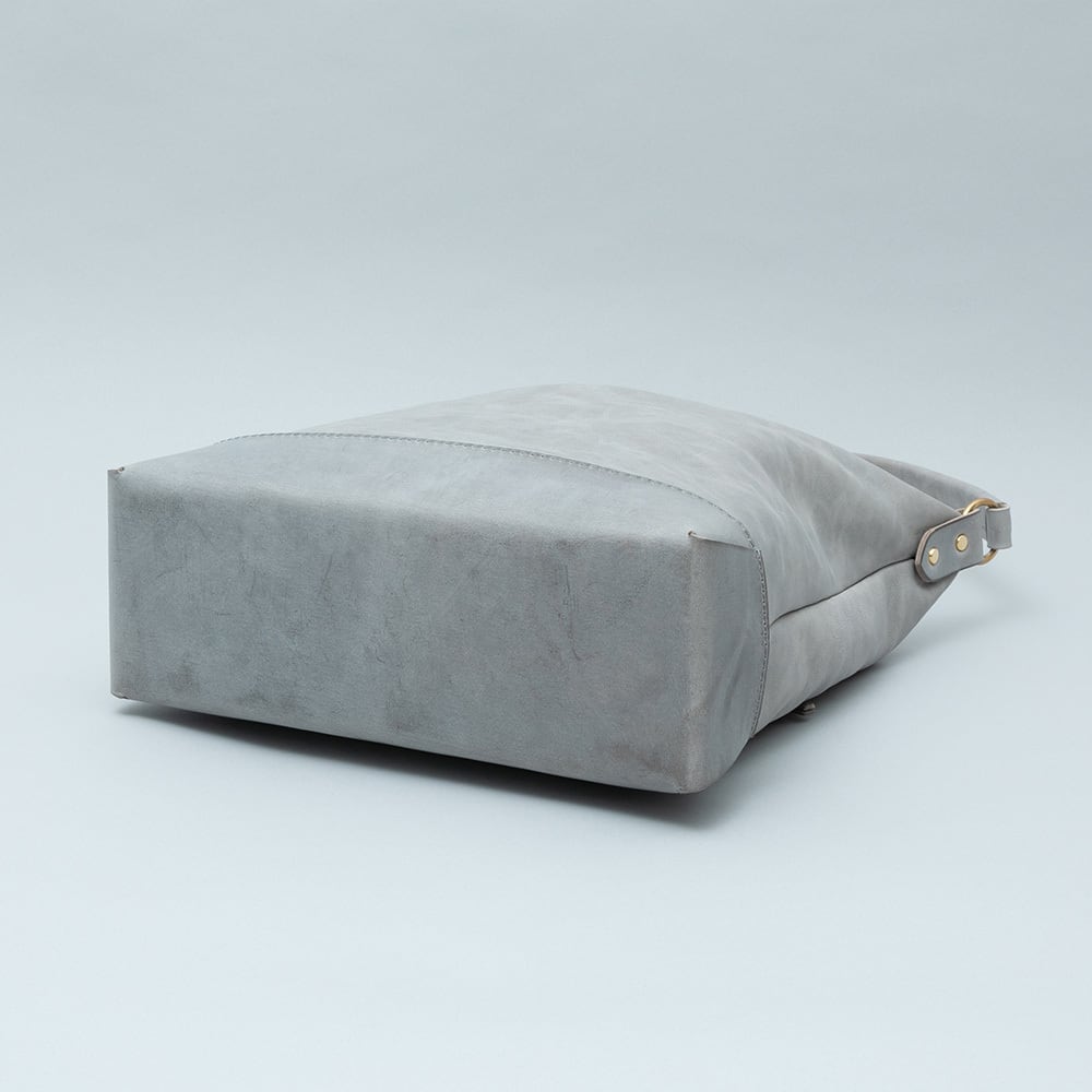 【Arco tote bag / TT-340】 Leather : SIBILLA LISCIO × SIBILLA BOX color : Ivory / Graphite / Smoke black size : W330mm / H330mm (取手含まず)- 300mm(取手高) / D120mm weight : 0.8kg 本体からショルダーストラップにかけて柔らかな円弧を描いたトートバッグ。 シビラボックスの柔軟性を活かした沈み込むような落ち感のあるフォルムが印象的な本体。底部分にはスムースレザーのシビラリスシオで切り返しをしているため、革質のコントラストを楽しみつつも床に置いた時にしっかりと自立するように仕立てています。 本体収納部はA4規格に対応しており、内部にはA5ノートの入る差し込みポケットを付属しています。背面部にはファスナーポケットを付けているため、キーケースやスマートフォンなどよく取り出すものの収納におすすめです。 写真ではフラップノートカバーL(NC-2029-L)、A4レザーファイル(NC-1052)、ドローストリングポーチM(PO-3037-M)、スクエアウォレットL(WA-3005-L)、ラウンドジップキーケース(KH-1028)、タンブラーを収納しています。 カジュアルからフォーマルまで幅広く使用できるすっきりとしたワンハンドルトートバッグです。 【受注制作商品】 こちらの商品はご注文を頂いてから製作致します。お手元に届くまで4-5週間の納期を頂いておりますので予めご了承ください。 在庫がある場合は3営業日以内に発送致します。在庫の有無は事前に問い合わせることも可能ですのでお急ぎの場合はご連絡下さい。