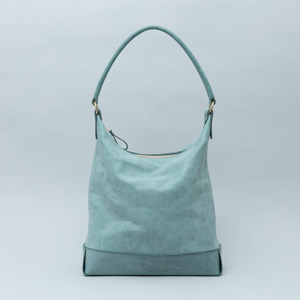 シビラボックスの柔軟性を活かした沈み込むような落ち感のあるフォルムが印象的な本体。底部分にはスムースレザーのシビラリスシオで切り返しをしているため、革質のコントラストを楽しみつつも床に置いた時にしっかりと自立するように仕立てています。