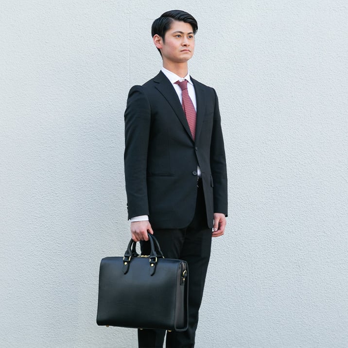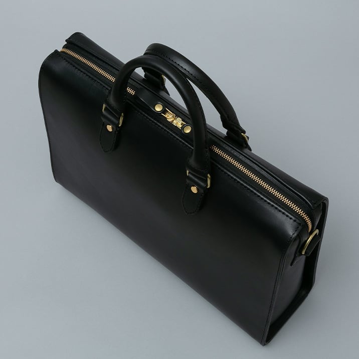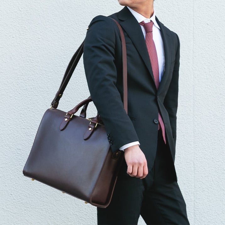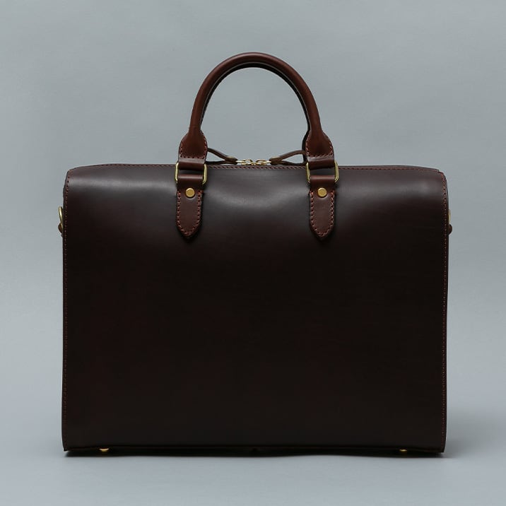 【Cresta 2way business bag / BR-113】 Leather : BULGARO color : Brown / Dark brown / Black size : W390mm / H290mm / D110mm weight : 1.6kg なだらかにラウンドしたフォルムが特徴の2wayビジネスバッグ。 開口部に4層の革を重ねて縫い上げることで丈夫でかっちりとした形状を保っています。前後対象かつ両開きのジップのため左利き右利き問わずご使用いただけます。 手持ちと着脱可能なショルダー付きの2way仕様。標準で底板と底鋲がついているため、床に置いた時も革の摩耗を抑えてしっかりと自立します。 メイン収納はA4E規格に適したサイズに設計しています。(写真では16インチPCとA4ファイルを収納) 内側にはスマホやパスケースなどの仕分けに便利な仕切りポケットを、反対側にはA5サイズの手帳が丁度よく収まるファスナーポケットを配置しています。 ブルガロのしなやかで堅牢な質感がビジネスシーンに溶け込むシンプルなビジネスバッグです。 【ショルダー】 Leather : TENDER 幅24mm、長さ105cm-130cm 穴数5発、6.5cmピッチ 革の性質上、多少の伸びがあるため表記サイズと誤差が生じる場合があります。 こちらの製品はショルダー着脱式となっています。 【受注制作商品】 こちらの商品はご注文を頂いてから製作致します。お手元に届くまで4-5週間の納期を頂いておりますので予めご了承ください。 在庫がある場合は3営業日以内に発送致します。在庫の有無は事前に問い合わせることも可能ですのでお急ぎの場合はご連絡下さい。
