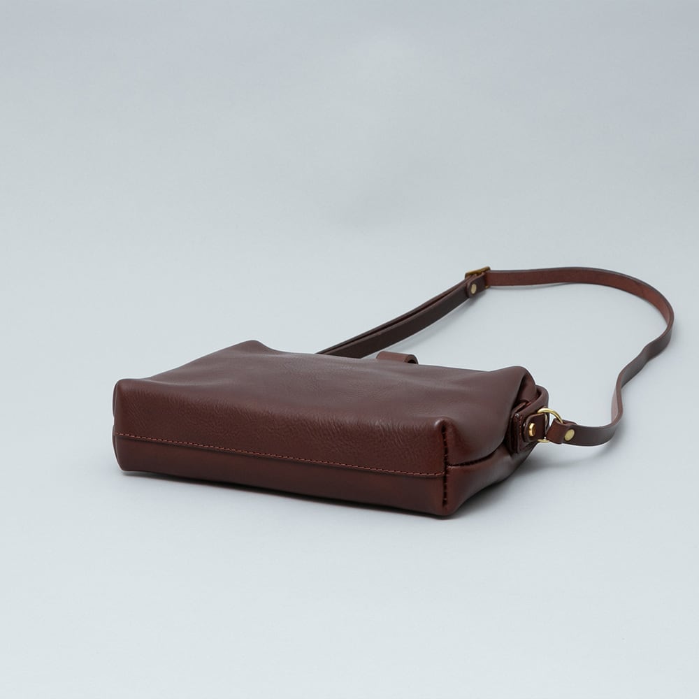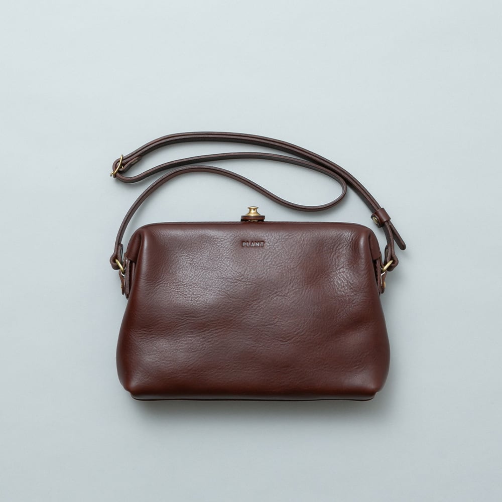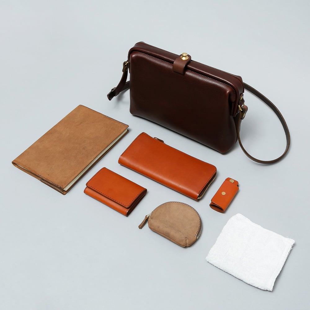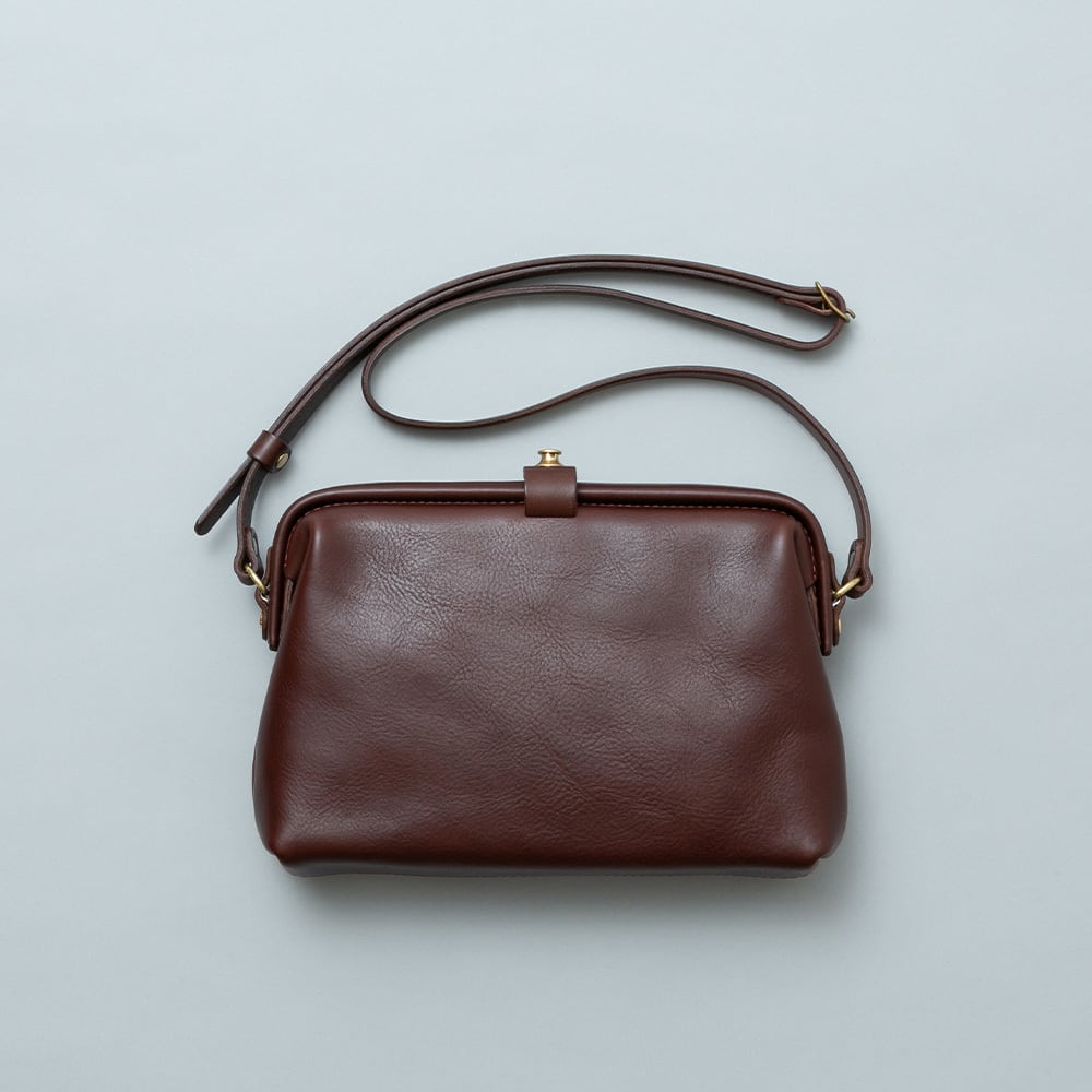 【Swallow shoulder M / SH-215-M】 Leather : NEBRASKA color : Brown / Dark brown / Black size : W270mm / H190mm / D60mm weight : 0.6kg すっきりとした盤面にドイツホック留めがワンポイントになっている口枠式ショルダーバッグ。 ネブラスカの肉厚で柔らかな質感が感じられる、ふっくらとしたフォルムが特徴です。 鞄上部に取り付けられたドイツホックによりワンタッチで大きく開き、背負った時に上部から内部全体を見渡せる視界の良さを兼ね備えています。 写真ではA5ブックカバー、スクリューキーケース(KH-1022)、ダブルジップウォレット(WA-1001)、サークルポーチS(PO-3018-S)、ビジネスカードケース(CC-1008)、ハンカチを収納しています。 ミニマムな見た目の中にどこかクラシックな雰囲気を持ったA5サイズのショルダーバッグ。ペットボトルや小型の折り畳み傘など、もしもの時に必要な持ち物も気軽に持ち運ぶことが可能です。 【ショルダー】 Leather : TENDER 幅15mm、長さ100cm-120cm 穴数5発、6.5cmピッチ 革の性質上、伸びがあるため表記サイズと誤差が生じる場合があります。 こちらの製品はショルダー一体型となっていますので着脱は出来ません。 【受注制作商品】 こちらの商品はご注文を頂いてから製作致します。お手元に届くまで4-5週間の納期を頂いておりますので予めご了承ください。 在庫がある場合は3営業日以内に発送致します。在庫の有無は事前に問い合わせることも可能ですのでお急ぎの場合はご連絡下さい。